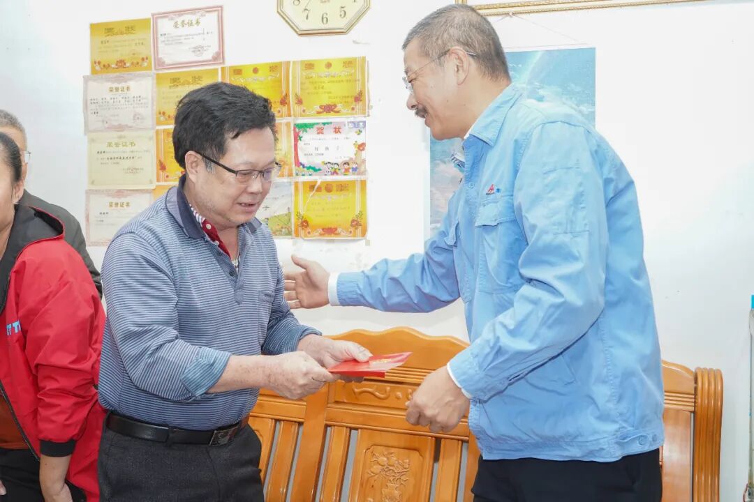行程最后,刘明东一行来到全国劳动模范、退休员工刘文伟的家中慰问,并送上慰问品、慰问金和新春祝福。刘明东对刘文伟从业40多年来,对公司发展作出的突出贡献表示感谢,并对他在退休以后继续发光发热,坚持为公司和当地培养焊工技能人才的事迹给予了肯定和赞赏。